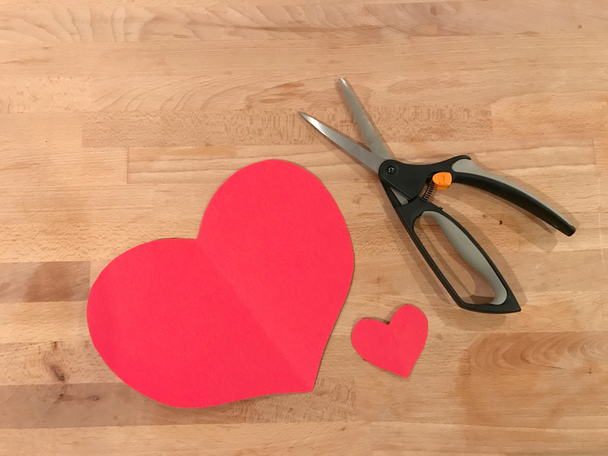 While your stain is drying, use the scissors to cut 2 heart shapes out of the piece of cardstock; one large and one small. You will use these as a template.
