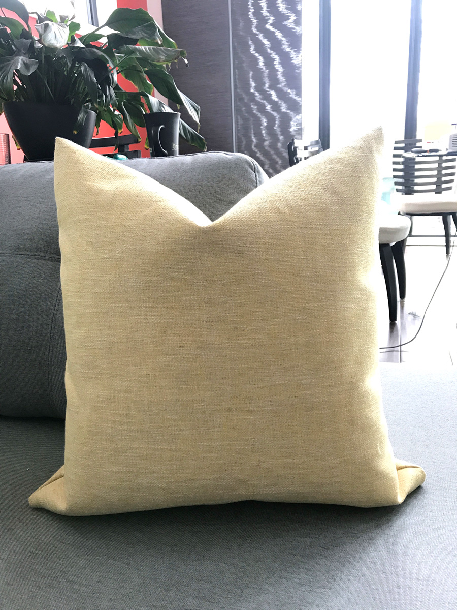 Because we are building the desk & bench ourselves, the seat will need to be made to size. Sewing a box cushion cover was definitely the most complicated thing I’ve ever made. It took a fair bit of trial and error and may or may not have caused an irrational meltdown or two, but in the end it turned out great and the Corfu Sunshine fabric we ordered from Tonic Living was a perfect choice. Now all it needs is a bench!