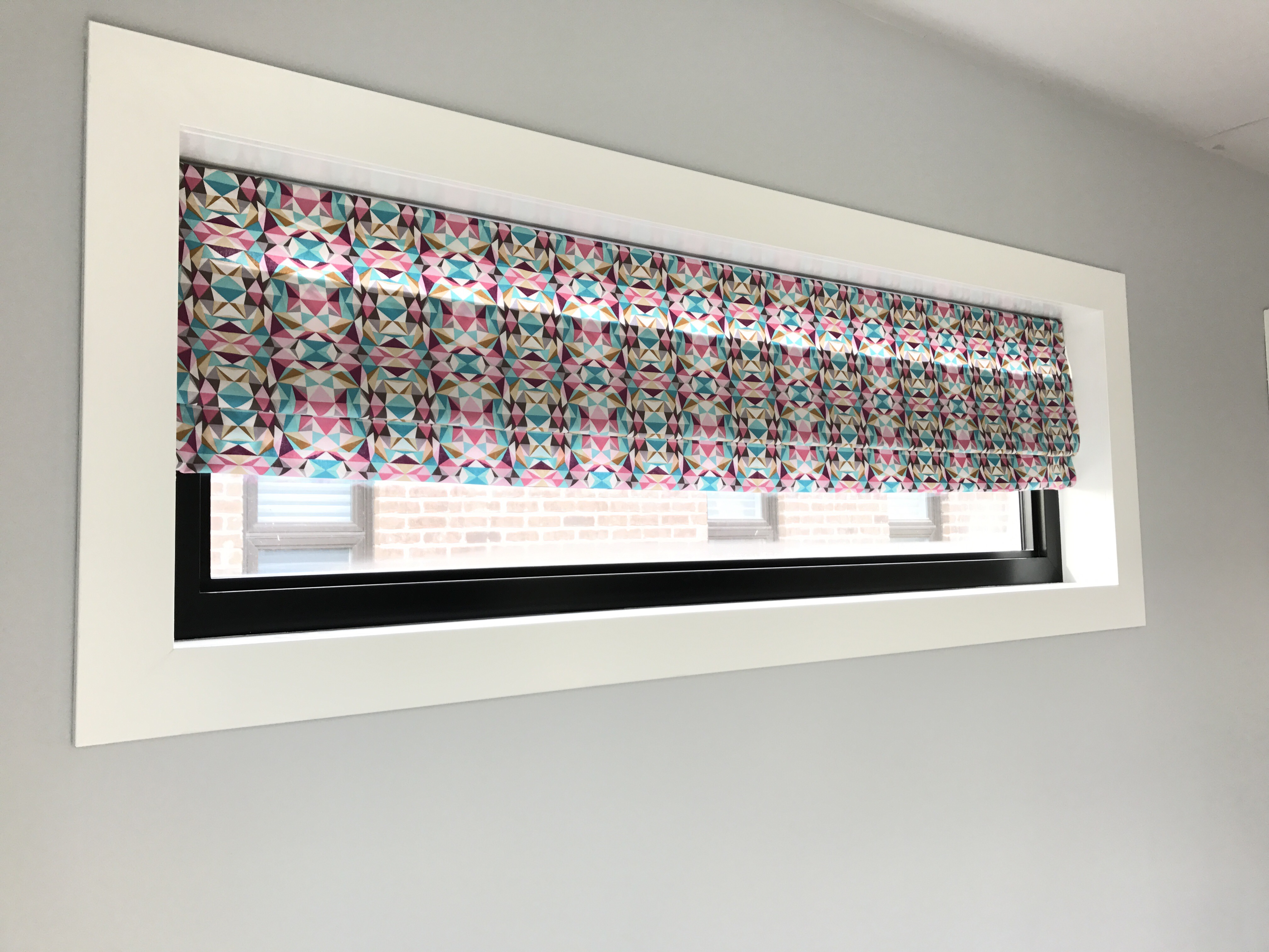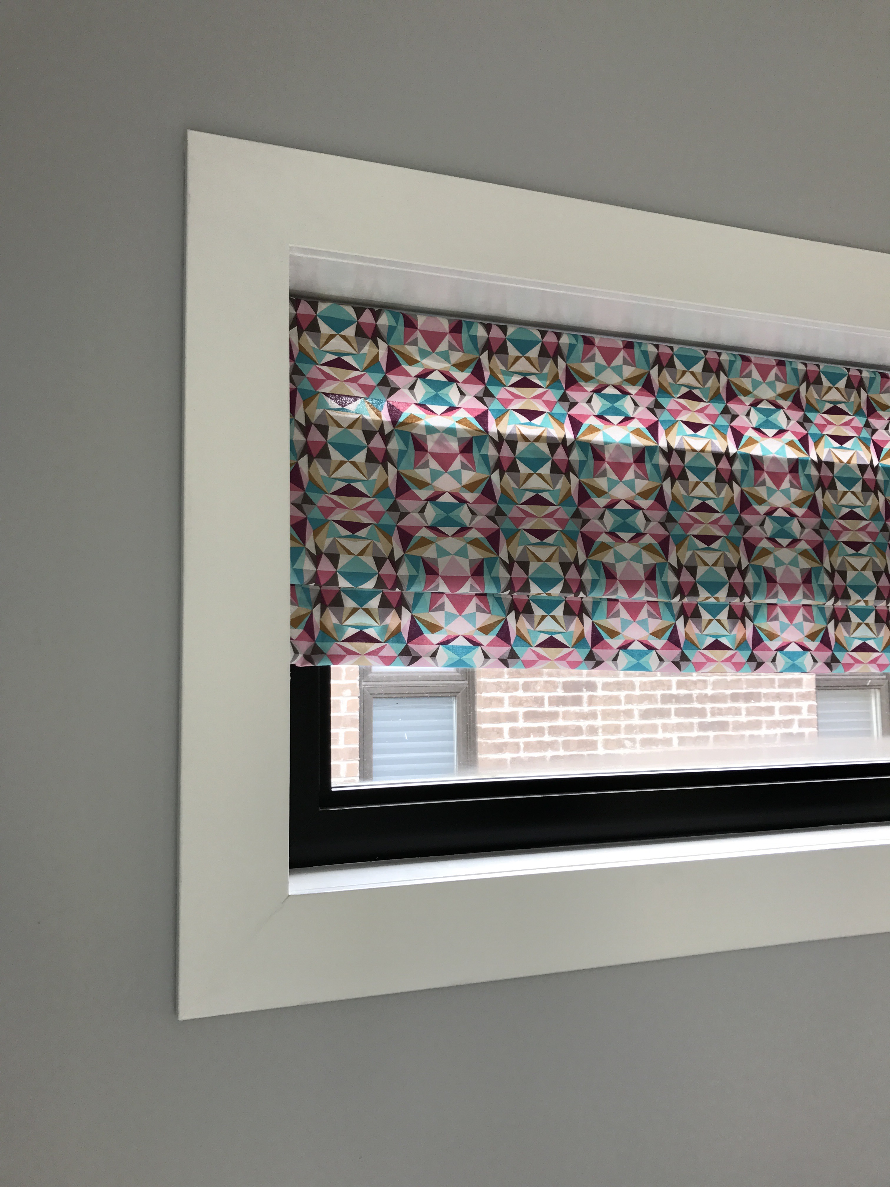We’ve begun bringing some colour into the room with these DIY faux roman blinds. I’m super in love with the Modernist Joel Dewberry fabric we purchased from Fabric Spark. The colours in it are so fun and the purple tones are a perfect match to the PARA Pixie Pop (PF-3) we used on our barn doors.