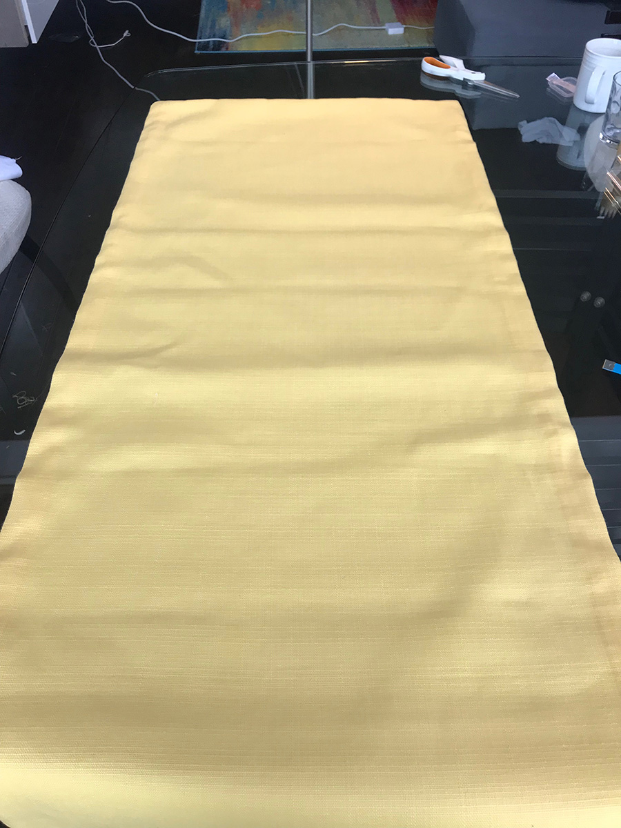 Kash’s bedroom has really large windows which are great for providing a lot of natural light. The only drawback to that, is that it makes window treatments really expensive. Luckily I happened to find the perfect sunshine yellow fabric on clearance from Tonic Living, which cemented my decision to give sewing another try with a set of roman blinds.